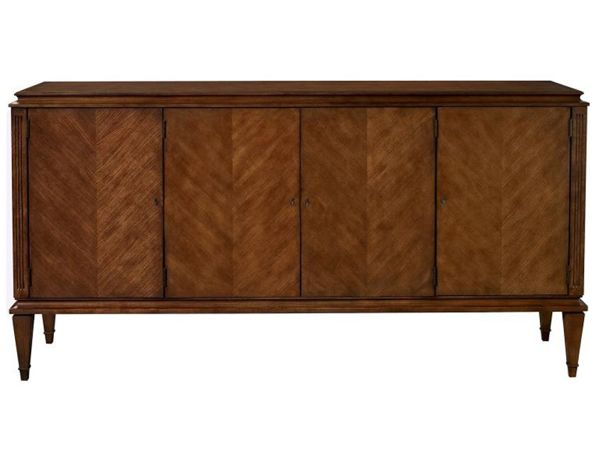 Artisan Sideboard rests on a stepped lower rail and and tapered posts with a