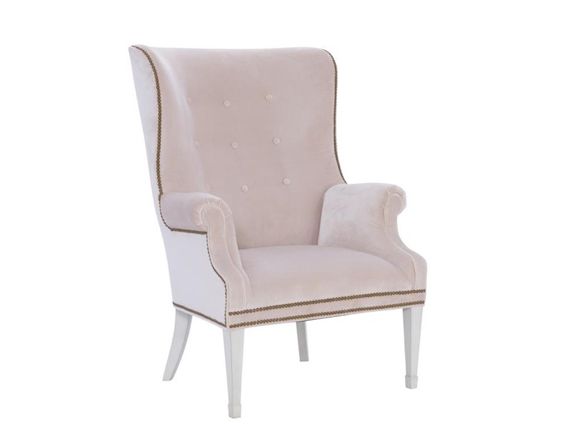 form that is accentuated by its slender tapered legs and barrel-shaped buttoned