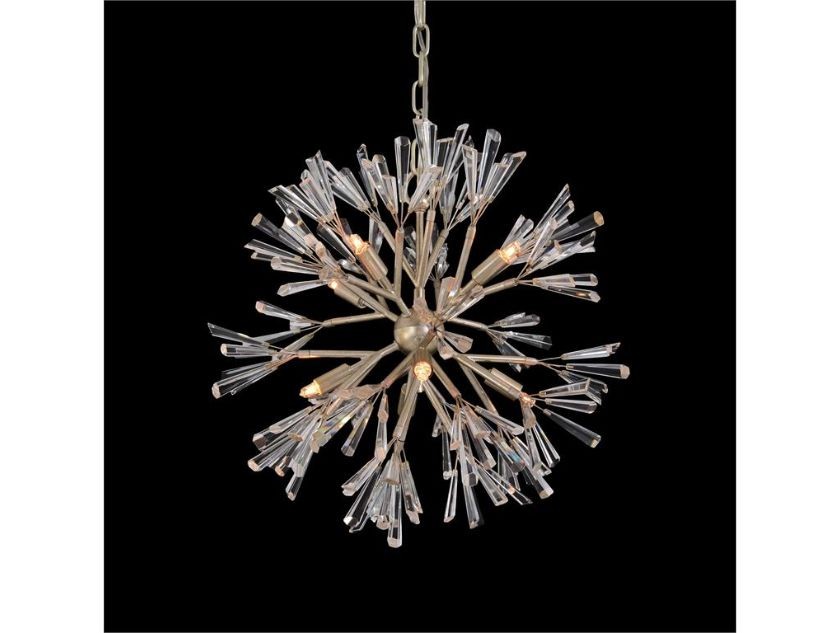 This crystal wand branched pendant chandelier with eight lights is ablaze in an antique silver-leaf finish.