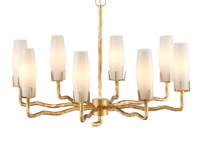 The Mathilda Chandelier has a frame made of cast brass in a matte