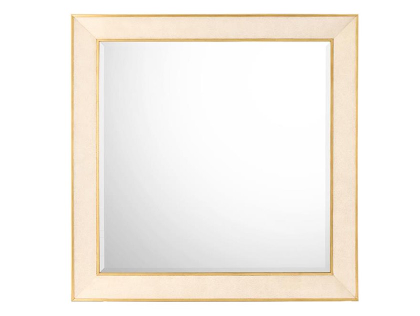 tones. The beveled mirror is encased in a square beech wood frame, finished in