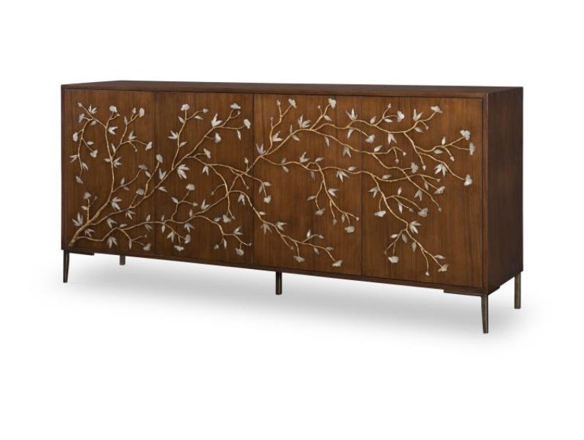 Bleach Walnut Chiffonier with Hand Waxing, Capiz Shell and Brass Accents
