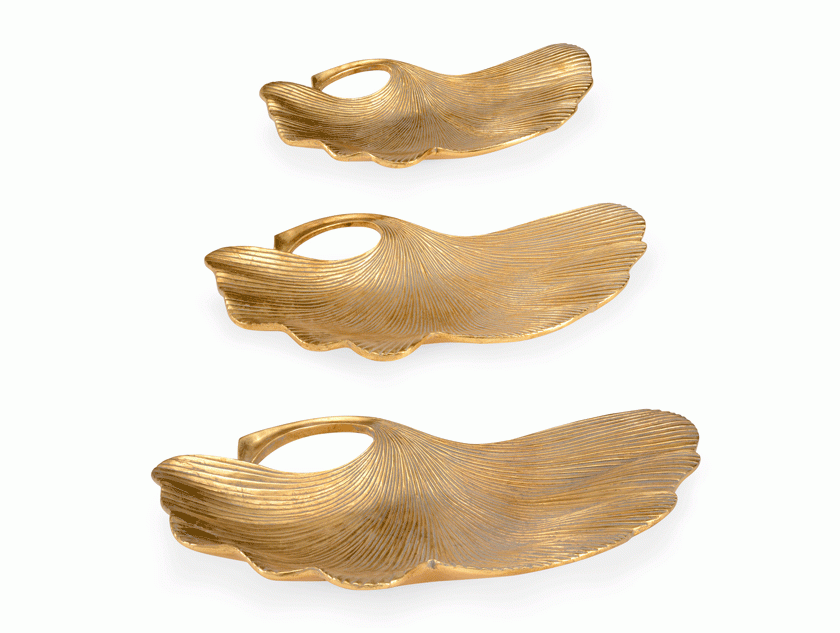 Nature-inspired elegance meets golden glamour. the Chelsea House Lotus Leaf Trays in Gold.