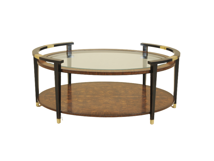 The Maitland Smith Cocktail Table with a glass inset top is a