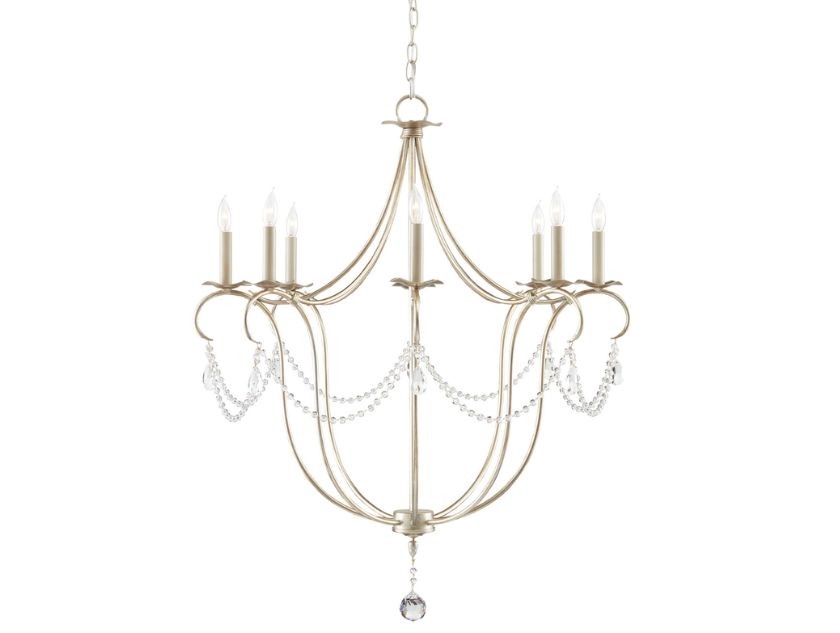 The Crystal Lights Silver Large Chandelier drips with crystal