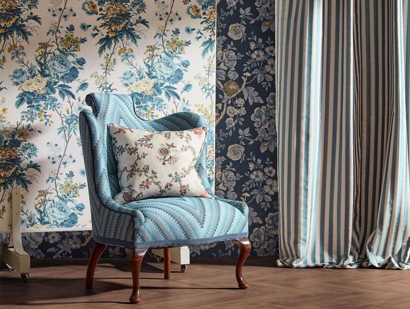 Cut on the bias, the design takes a new direction in this fabric and informs