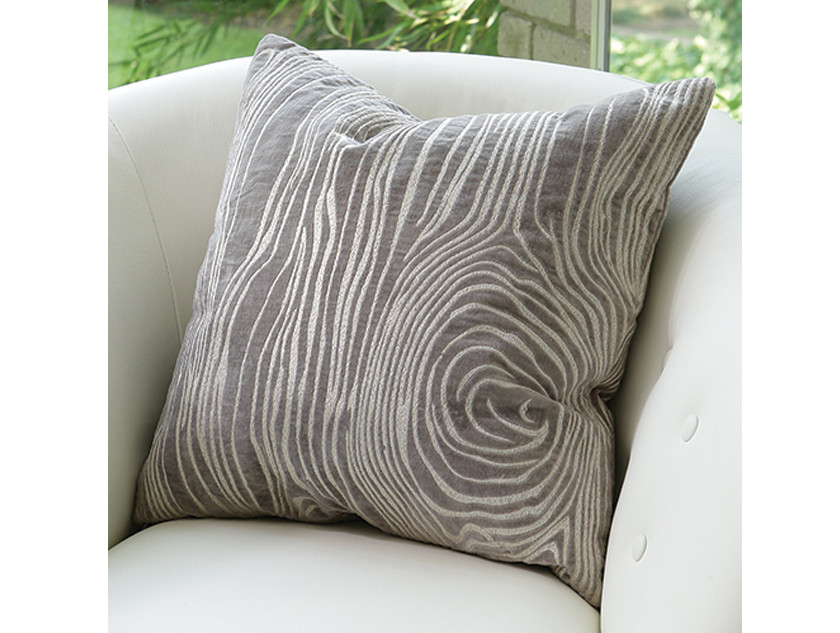 Pillow. The cool white embroidered bois patter pops against the soft grey