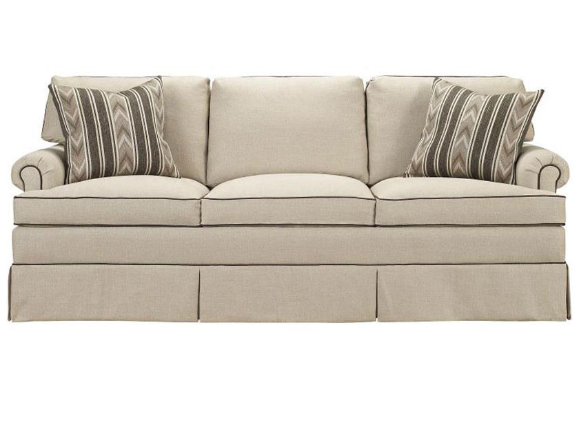 Optional contrasting fabric, welt and skirt trim shown. The Guthery series