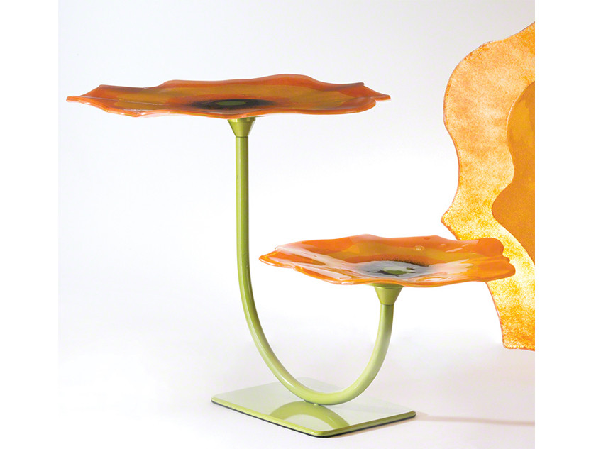 The Global Views Poppy Plate Stand in Orange, a striking way to showcase your favorite plates or art.