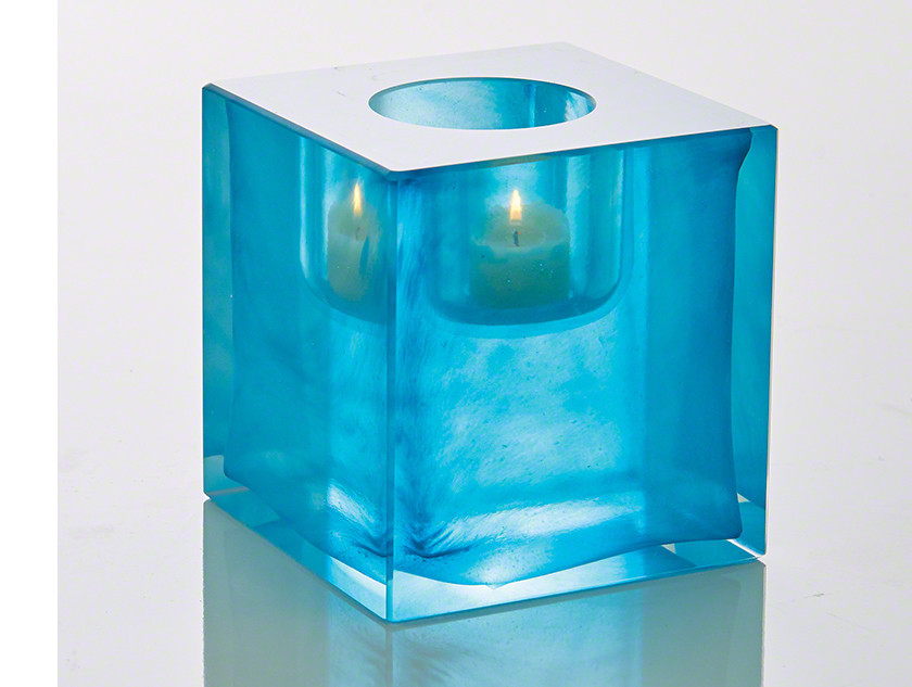 Soft aqua glow, polished block form, illuminate your space with modern refinement.