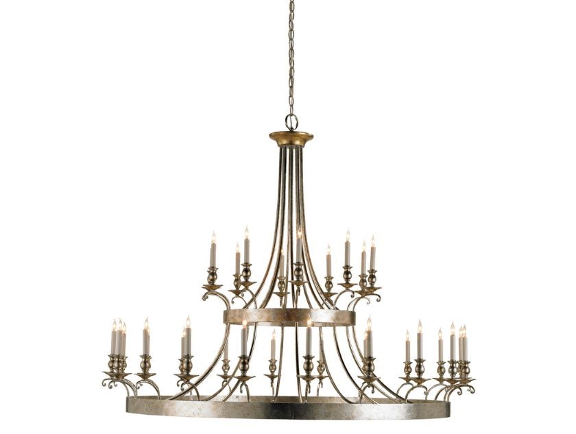 leaf and antique gold leaf finishes. This grandly scaled, thirty-light silver