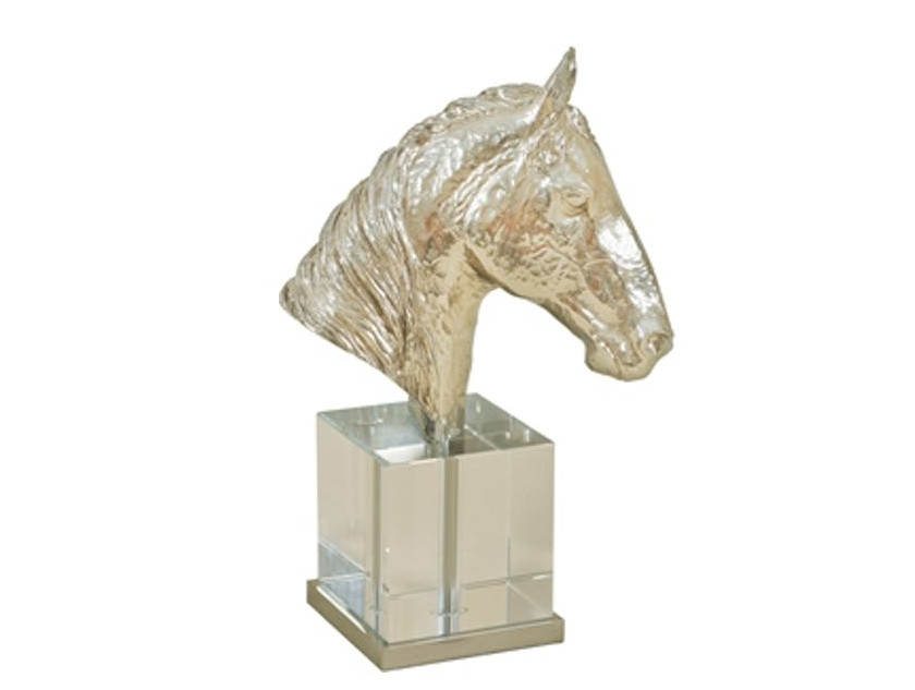 Bold artistry meets timeless elegance, the Maitland Smith Cast Brass Horse Head on Glass.