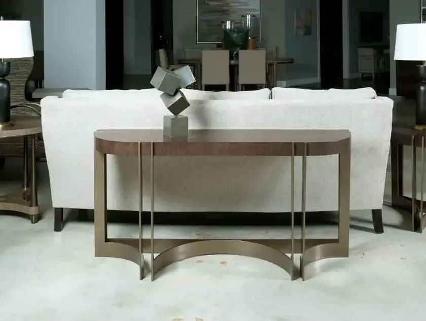 with bronze nickel metal in addition to wood veneers and solids, these pieces