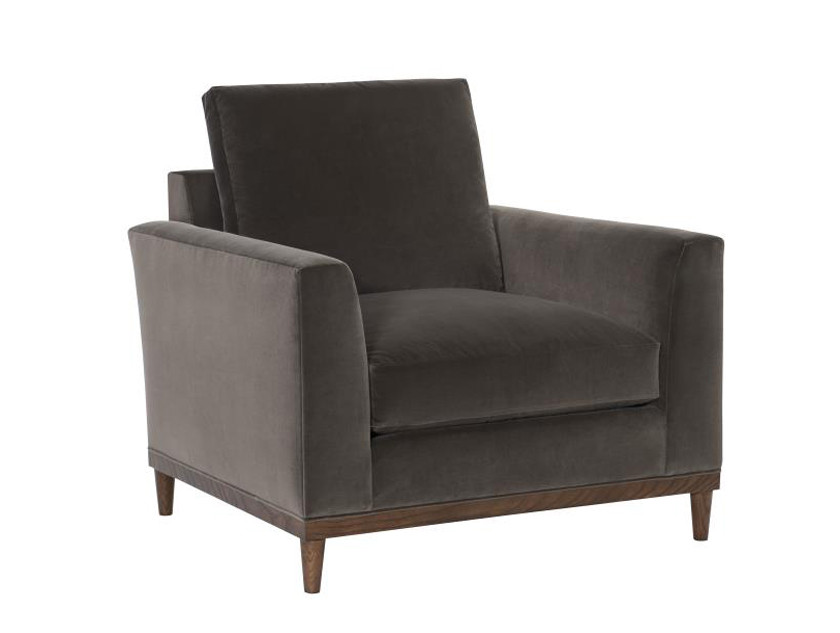 Like the Ryder sofa this generous club chair has a welcoming proportion and modern line. The wood details provide the perfect accent below its tailored upholstery. in Dark Walnut finish. Shown in Truffle finish.